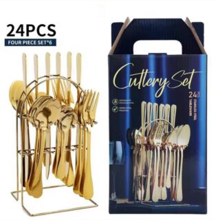 24 PCS Quality Golden Cutlery Set with Stand