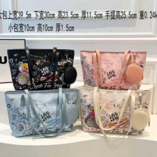 Bear Print PU Ladies Tote Bag with Round Purse