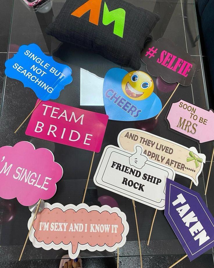 - Set of 10 Fun Props: Includes stylish bridal-themed sayings and designs