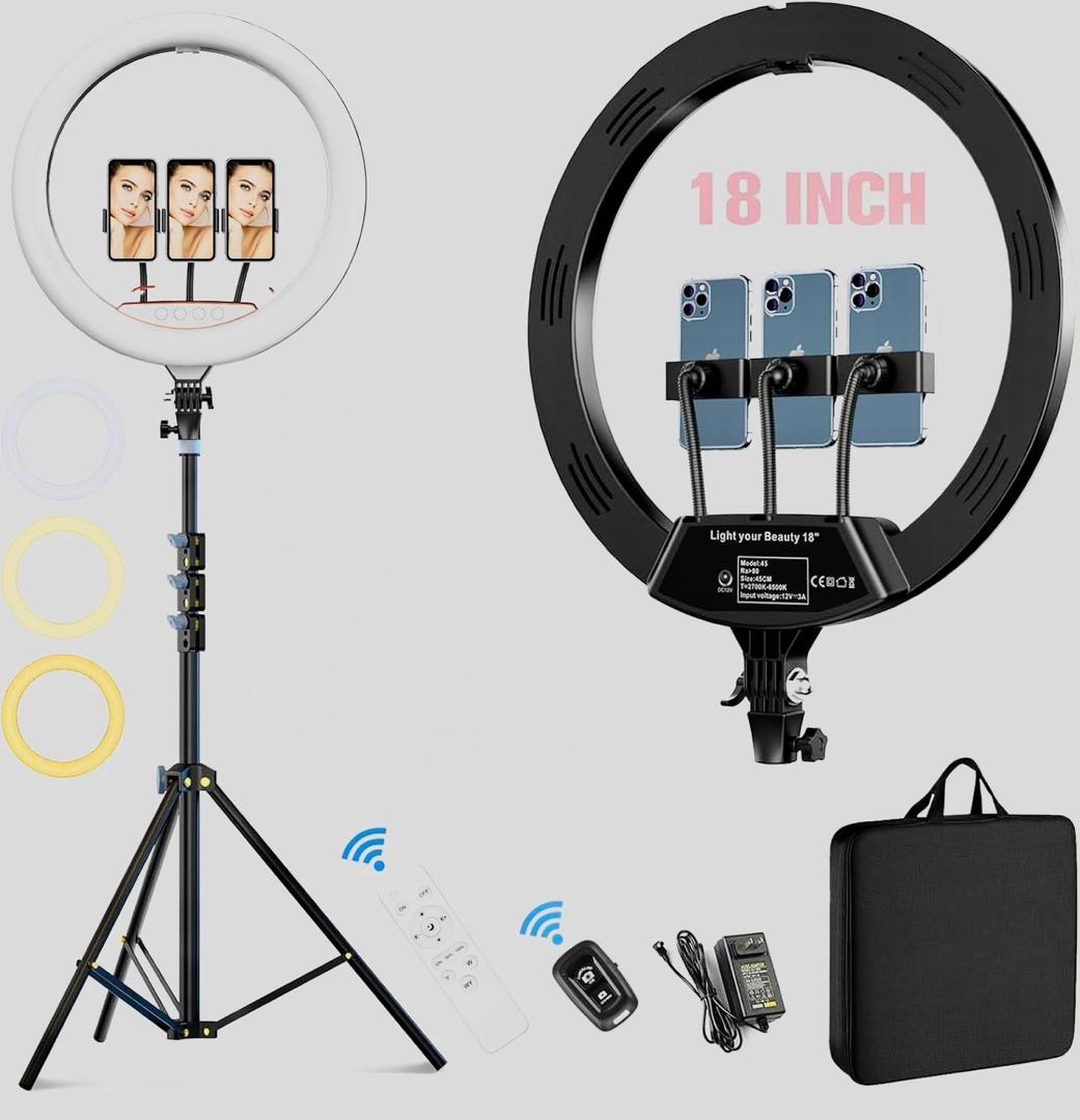 Take your content to the next level with this professional 18-inch ring light. Designed for maximum brightness and flexibility, it delivers smooth, even lighting for stunning photos and videos.