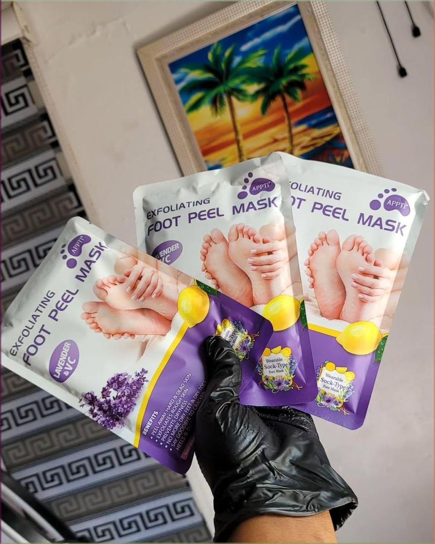 Wear the foot mask for the recommended time, then rinse off. Dead skin will gradually start peeling within a few days—do not force peel; allow natural shedding.