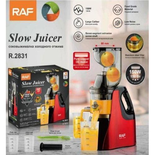 Whether you’re preparing fresh orange juice, apple juice, vegetable blends, or healthy detox drinks, the RAF Slow Juicer is a reliable and efficient appliance for every modern kitchen.